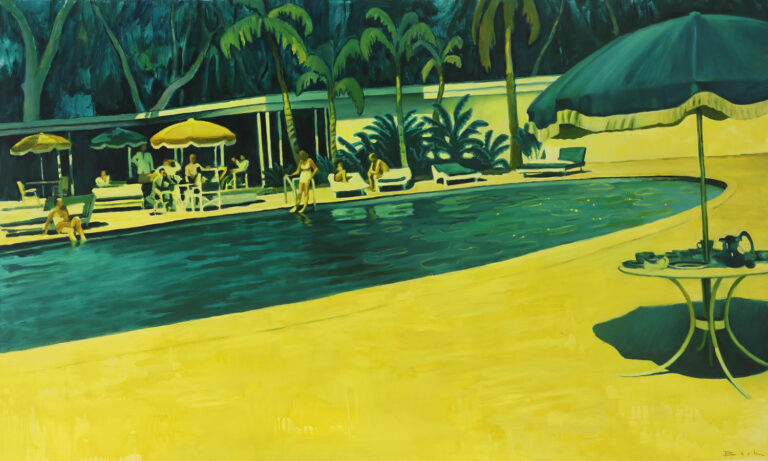 Hotel Pool 2025, oil on canvas, 36 x 60 in